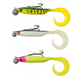Gumené nástrahy MADCAT® RTF (Ready to Fish - pripravené rovno na použitie) majú presne tú pravú veľkosť a akciu na sumca všetkých veľkostí. Sú osadené kvalitným, ultra ostrým a pevným trojháčikom 6X veľkosti 2/0. Vďaka jigové hlavičke sa dá veľmi ľahko nástraha vymeniť v prípade, že ju sumec poničia. K dispozícii v 3 obľúbených hmotnostiach a 3 obľúbených farbách. Dodávané vo veľkých baleniach po 16 kusoch.