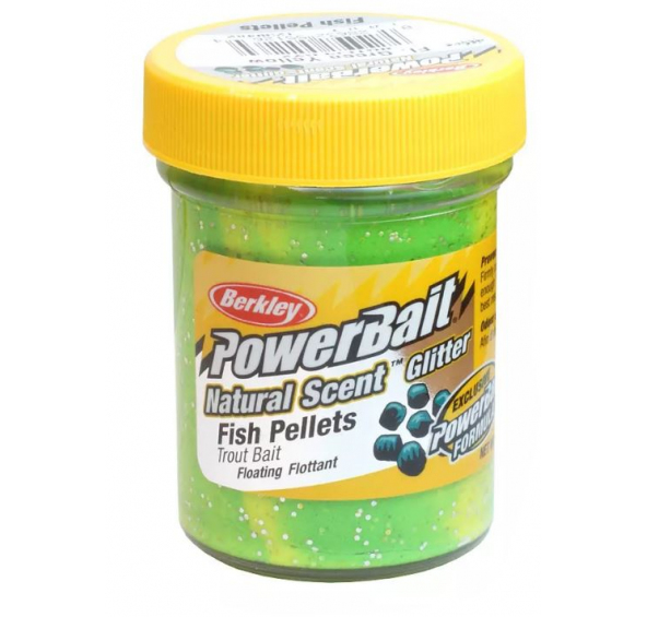 Berkley Cesto PowerBait Natural Glitter Trout Bait Fish Pellet Fluo Green Yellow 50g