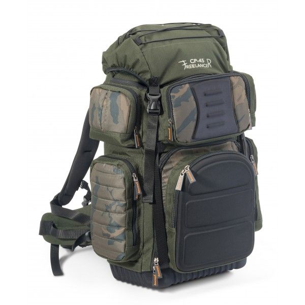 Multifunkčný batoh v maskovanom dizajne. Má silne polstrované chrbtové a pásové popruhy. Predné vrecká sú na čelnej strane vybavené materiálom EVA, ktorý chráni krehký a citlivý obsah vrecká, napr. telefón alebo fotoaparát. Batoh má extrémne silné spoľahlivé zipsy, spodná časť je vyrobená z vodeodolného a umývateľného PVC. Anatomicky tvarovaná a vystužený chrbát, rovnako ako rad možností nastavenia, zaručujú optimálny komfort. vnútorné rozmery: 35 x 55 x 25 cm vonkajšie rozmery: 79 x 49 x 40 cm Integrovaný pršiplášť hrudný popruh Tvrdá spodná časť 4 bočné vrecká (16 x 28 x 6 cm a 16 x 16 x 6 cm) 2 predné vrecká (26 x 30 x 8 cm a 25 x 18 x 8 cm) 1 priestranná hlavná časť s 3 vnútornými vreckami zo sieťoviny veľké predné vrecko so zipsom vodu odpudzujúca povrchová úprava neoprénová rukoväť vonkajšie rozmery: 79 x 49 x 40 cm materiál: 600D nylon...
