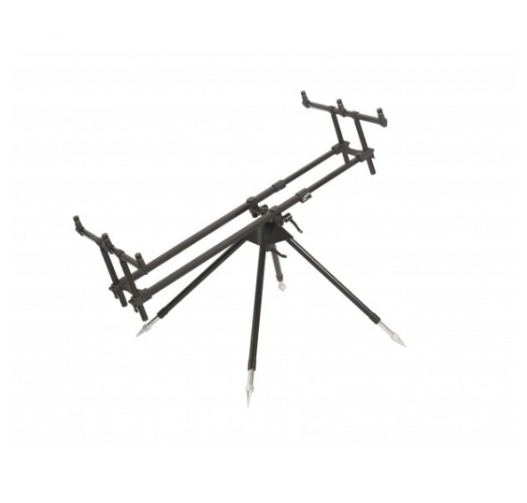 Rybársky stojan za rozumnú cenu. Ponúka pohodlie a maximálnu stabilitu. Stojan možno otáčať o 360, možno upraviť jeho sklon a na jeho 43cm dlhých ramenách nájdeme tri držiaky na rohatinky alebo hlásiče záberu.