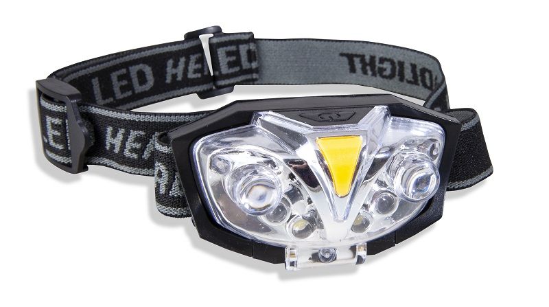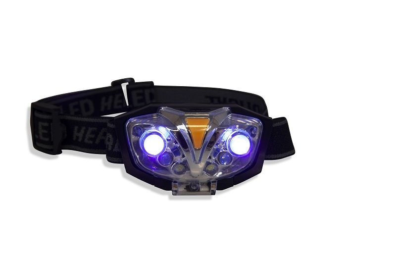 Čelovka s dvoma UV, červenými a bielymi LED. Svietidlo môžete vykloniť až o 90 °. Je napájaná 3x AAA batériami (nie sú súčasťou balenia). Čelovka má tri spínacie úrovne.
