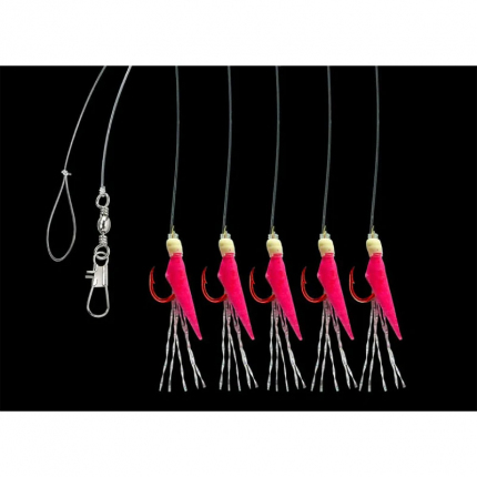 Kvalitný morský návazec s piatimi háčikmi veľkosť 4 potiahnutými pravou rybou kožou. Farba pink zabezpečuje vysokú viditeľnosť aj v hĺbke a láka slede aj makrely. Hlavný vlasec 0,50 mm, nadväzce 0,45 mm, dĺžka 150 cm, nosnosť 12 kg....