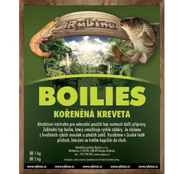 Boilies Rybina - Korenená kreveta 5kg 20mm