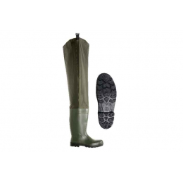 Rybárske čižmy ktoré Vám zaručí 100% nepremokavosť vyrobené z odolnej gumy a nylonu. Pevná topánka dobre sedí na nohe a chráni ju proti ostrým kameňom a oderu. Podrážka má až 0,5cm drážky vďaka ktorým sa nešmyknete ani na klzkom povrchu. Bočným pásikom s klipom je možné uchytiť gumáky o opasok aby ste predišli zrolovania čižiem.