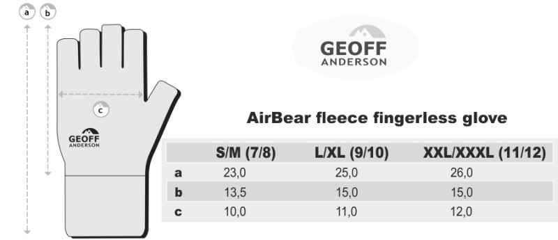 Fleece rukavice s protišmykovou úpravou Geoff Anderson AirBear. Rukavice sú veľmi ľahké, teplé a výborne sa prispôsobí tvaru ruky.