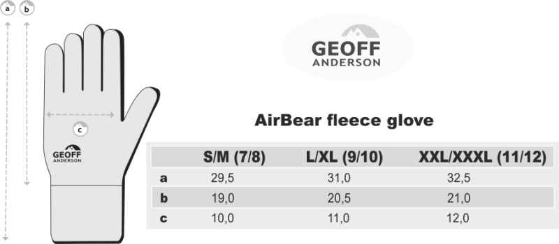 Fleece rukavice s protišmykovou úpravou Geoff Anderson AirBear. Rukavice sú veľmi ľahké, teplé a výborne sa prispôsobí tvaru ruky.