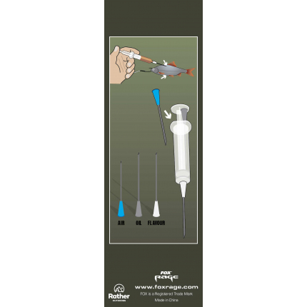 - Súčasťou balenia sú 2x injekčné striekačky a 3x ihly na vstrekovanie vzduchu a oleja do mŕtvej nástrahy