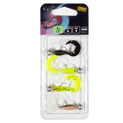 Nové balenie mix farieb nastražených Micro Grub Tail 4 nové farby: UV Nightmare, UV Chartreuse Ayu, UV Lemon Tiger a UV Hot Olive Nastražené na jigových hlavičkách 3g, veľkosť 4 4 nástrahy v balení...