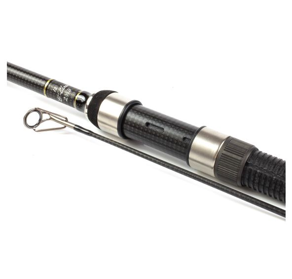 E-Class Gold je nádherný tenký prút, vyrábaný z vysoko modulárneho 40t uhlíka. Originálne vinutie uhlíkových vlákien spolu s decentným zlatým vyviazaním z neho robia dizajnový skvost. Je výborný pri nahadzovaní, zároveň pôsobí veľmi príjemne pri zdolávaní. Dlhodobo patrí k najlepšie hodnoteným a najpredávanejším prútom strednej cenovej triedy. Niet divu, pomer cena / kvalita / výkon je u neho absolútne neskutočný. Povrch prútov je matný, bez laku, zbrusovanie laserom. Vďaka tejto technológii je prakticky nemožno poškriabať. Aj po rokoch vyzerajú ako nové. Sedlo majú v dizajne blanku s originálnymi FUJI krúžkami, v sedle je drážka pre vlepenie izotopu. Prúty sú osadené šiestimi prvotriednymi S-lite SiC očkami. U 2,75lb modelu je štandardne vodiaca 40mm, koncové 12mm, u 12 '3,25lb si možno vyberať medzi štandardnou veľkosťou očiek (40 - 12mm) a veľkými očkami (50 - 16mm), ostatné modely sú štandardne osadené veľkými očkami (50 - 16mm). Rukoväť je možné dodať v troch prevedeniach. Štandardne je delená, kedy je na konci prútu v mieste úchopu zosilnené držadlo. Môže byť aj celo korková alebo celo EVA (špeciálna japonská guma). Dĺžka rukoväte od konca po nohu navijaku je u 12 'a 12'6 "modelov 59cm, u 13' 62cm. U korkové rukoväťou je navijak o 2cm ktorej. Na želanie je možné objednať inú dĺžku rukoväte, na prút nechať napísať svoje meno alebo iniciály, avšak je potom potrebné počítať s dlhšou dobou dodania. 12 '2,75lb - Vysoko univerzálny prút, použiteľný na menších a stredne veľkých vodách, alebo na vyváženie. Príjemná akcie. H 301g, P 12,4mm, Z 75 - 90g. 12 '3,25lb - Jednoznačne najlepšie prút na veľké rieky, ako je Labe, tiež výborný na ďalekej hádzanie alebo vyváženie na väčších vodách. H 330g, P 12,8mm, Z 90 - 110g. 12 '3,5lb - Silovo disponovaný pre ešte ťažšie záťaže a silovejší hádzanie. Akcia prútu pritom stále zostáva veľmi prijateľná. H 375g, P 13mm, Z 105 - 130g. 12 '3,5lb SU - Tento model s označením SU má stuženou spodnú časť, podobne ako Hi-S ive. Vďaka tomu s ním možno hádzať presne a veľmi ďaleko. H 388g, P 14mm, Z 105 - 130g. 12'6 "3,25lb - Dlhšie 3,85cm prút, ktorý je výrazne jemnejší, než 12 '3,25lb. Na druhej strane ho nie je možné tak preťažovať, v čom zase vyniká ten 12 '. H 355g, P 14mm, Z 85 - 100g. 12'6 "3,5lb - O niečo silovejší verzia 3,85 m prútu. Výborný model pre tých, ktorí hádžu skôr ťahom než švihom, príjemný pri zdolávaní. H 375g, P 14,1mm, Z 90 - 105g. 13 '3,5lb - Dostatočne silný, ale zároveň prijateľne citlivý prút na ďalekej hádzanie a veľké vody, najmä ak preferujete 13' prúty. H 387g, P 14,2mm, Z 100 - 120g. 13 '3,5lb SU - Variant pre extrémne náhody. Zosilnený spodok sa pri hode neprehýba, zatiaľ čo rýchla špička dokáže záťaž vymrštiť do diaľky. H 411g, P 15mm, Z 105 - 130g. H - hmotnosť kompletného prútu vrátane očiek. P - priemer (hrúbka) prútu nad sedlom. Z - optimálnu záťaž pre plný švih. Ťahom alebo stredne silným švihom možno nahadzovať aj oveľa ťažšie záťaže.