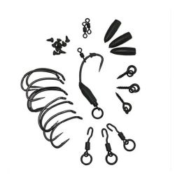 Súprava na montáž Ronnie Rig v kompletnom balení vrátane už hotového náväzca Ronnie Rig. Sada obsahuje: - 1 x hotový náväzec Ronnie Rig - 9 x háčik s protihrotom - 9 x zarážka Hook Stops - 3 x rukávky Tungsten Ronnie Sleeves - 3 x obratlík QC Hook Flexi-Ring Swivels - 2 x obratlík Hook Swivels - 3 x kolíček s krúžkom Flexi Bait Screws