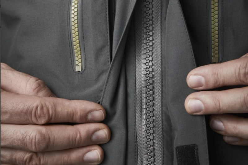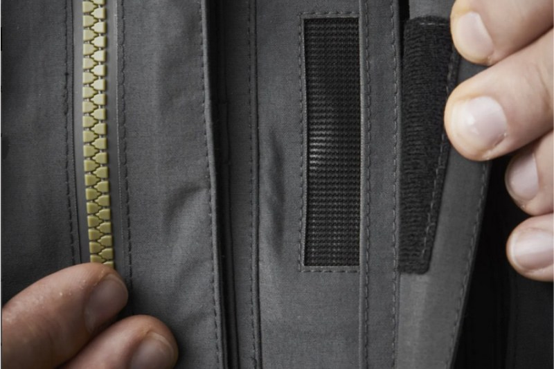 - Dve priestranné predné vrecká na hrudi so zipsami YKK® AquaGuard®