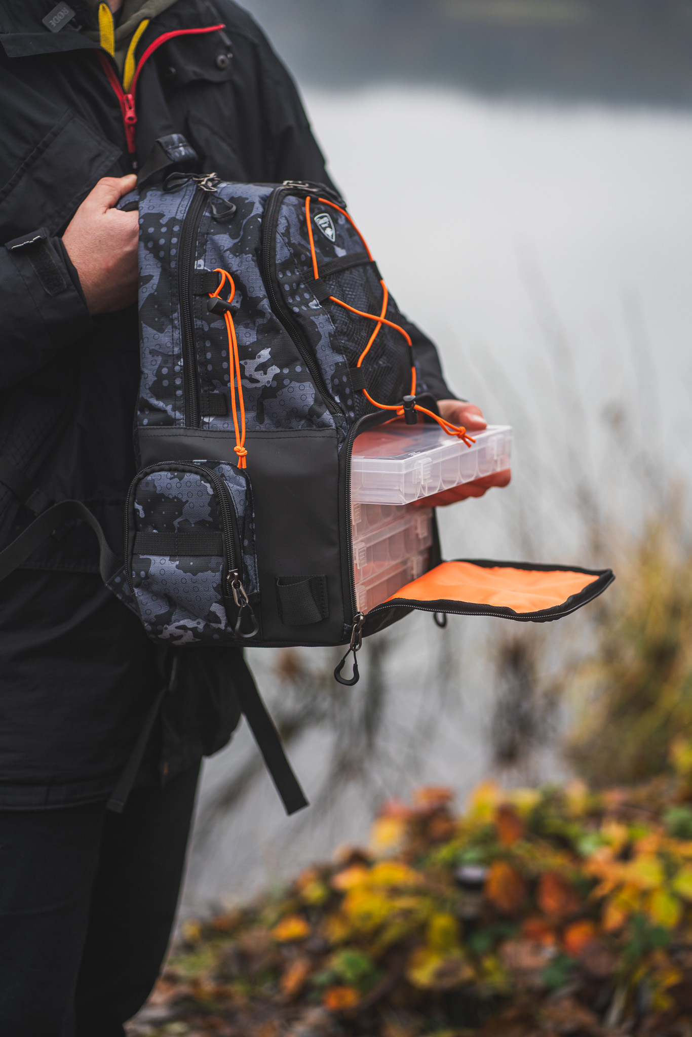 Praktický batoh, který je určený pro vláčkaře. Na jeho boku lze jednoduše připevnit prut s navijákem a batoh obsahuje čtyři krabičky na ukládání Vašich nástrah.