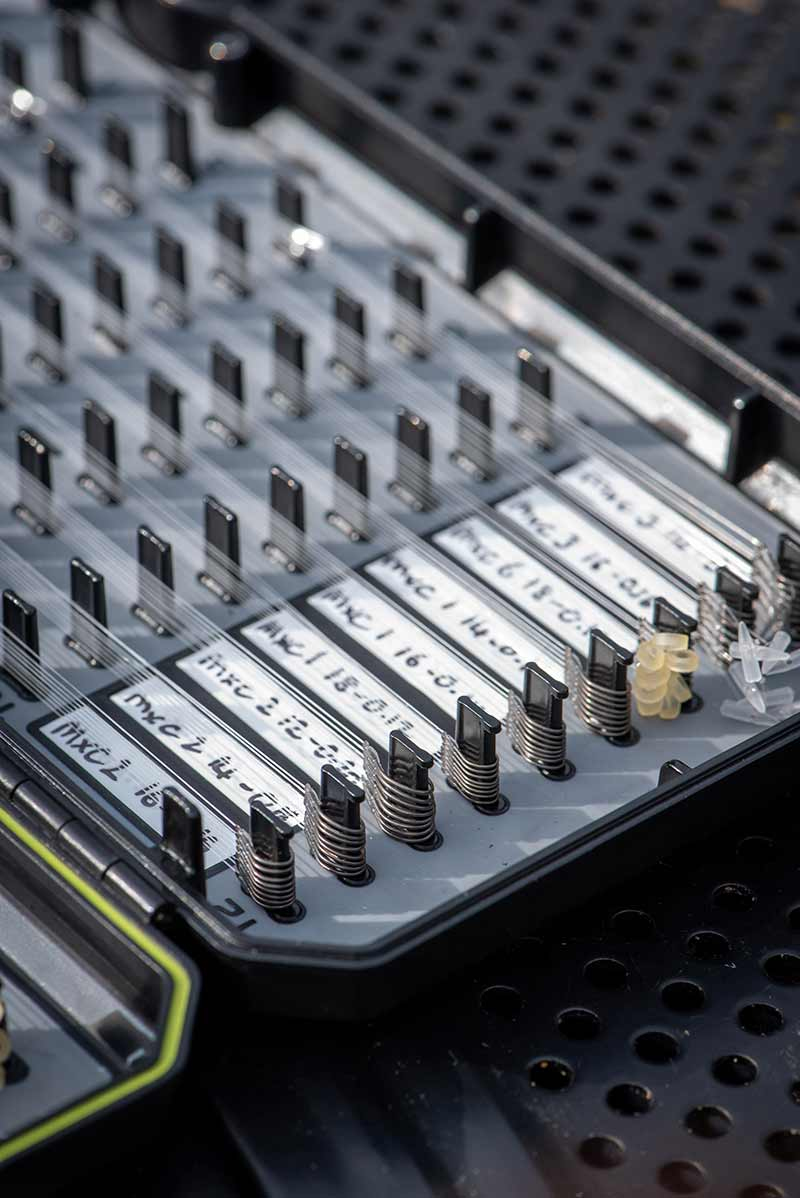 - Kratšie nadväzce možno uložiť na oboch koncoch puzdra pre maximálnu kapacitu