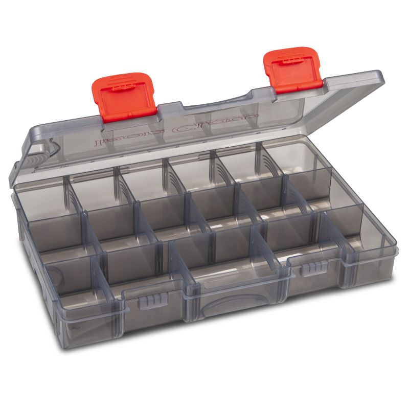 Prepracovali sme a rozšírili náš kompletný program boxov na nástrahy. Nové boxy Iron Claw Vario sú sfarbené do transparentnej šedej a poskytujú tak určitú UV ochranu, ktorá napr. potláča vyšisovanie nástrah. Veľkosť každej krabice a jej vnútorné usporiadanie je znázornené na obrázkoch produktov. Presne tieto Vario boxy nájdete v budúcnosti aj vo väčšine tašiek od Iron Claw. Vďaka tomu bude oveľa jednoduchšie nájsť ten správny box na výmenu alebo rozšírenie vašej zbierky. Rozmery: 27,5 x 18 x 4,5 cm...