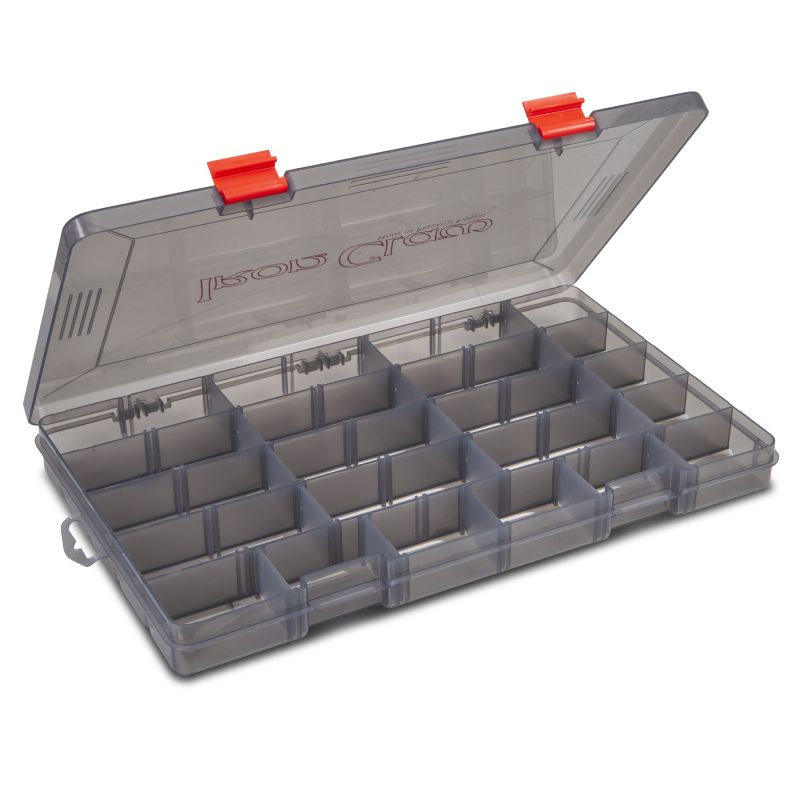 Prepracovali sme a rozšírili náš kompletný program boxov na nástrahy. Nové boxy Iron Claw Vario sú sfarbené do transparentnej šedej a poskytujú tak určitú UV ochranu, ktorá napr. potláča vyšisovanie nástrah. Veľkosť každej krabice a jej vnútorné usporiadanie je znázornené na obrázkoch produktov. Presne tieto Vario boxy nájdete v budúcnosti aj vo väčšine tašiek od Iron Claw. Vďaka tomu bude oveľa jednoduchšie nájsť ten správny box na výmenu alebo rozšírenie vašej zbierky. Rozmery: 36 x 22,5 x 3,5 cm...