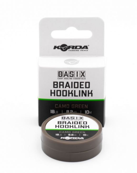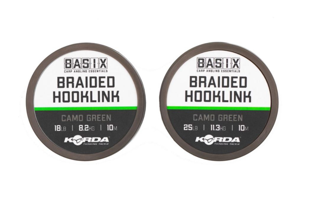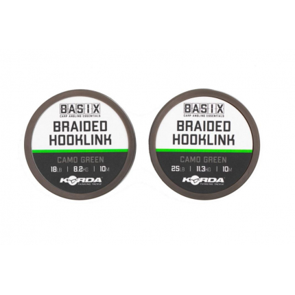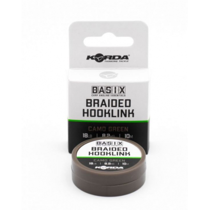 Basix Braided Hooklink je veľmi jemný, ale zároveň pevný a odolný proti oderu a veľmi dobre sa s ním pracuje pri výrobe mnohých typov montážou. Vyrába sa v prevedení "Camo Green" čo zaručuje dokonalé maskovanie na takmer akomkoľvek type dna. K dispozícii je v dvoch nosnostiach a to 18 lb alebo 25 lb a je dodávaný na 10 m cievkach.