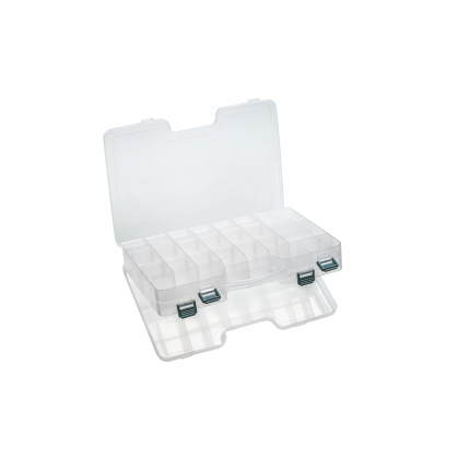 Ponuka plastových škatuliek a kufríkov predstavuje ucelený sortiment osvedčených a stále žiadaných modelov. Zaujímavé sú dvoj a trojposchodové kufríky, vyrobené z vysoko odolného plastu. V zavretom stave udrží stojaceho dospelého človeka. Za vynikajúce ceny vám ponúkame aj škatuľky na drobné príslušenstvo, háčiky, umelé mušky atď. Rad modelov z našej ponuky krabičiek prináša drobné inovácie oproti bežne ponúkaným typom na trhu. Tieto drobné úpravy sú vedené snahou maximálne prispôsobiť aj toto základné príslušenstvo praktickým požiadavkám rybárov. Všetky krabičky sú vyrobené z plastovej hmoty s prímesou silikónu. Umožňujú preto bezproblémové prechovávanie agresívnych gumových Twister a podobných nástrah.