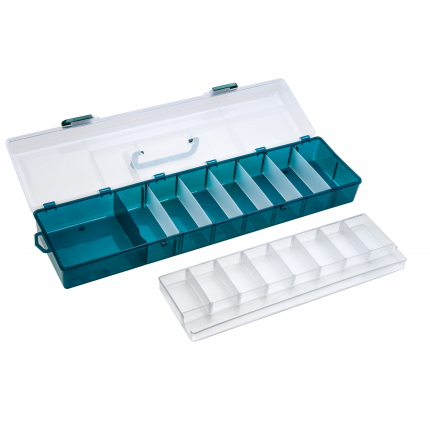 Ponuka plastových škatuliek a kufríkov predstavuje ucelený sortiment osvedčených a stále žiadaných modelov. Zaujímavé sú dvoj a trojposchodové kufríky, vyrobené z vysoko odolného plastu. V zavretom stave udrží stojaceho dospelého človeka. Za vynikajúce ceny vám ponúkame aj škatuľky na drobné príslušenstvo, háčiky, umelé mušky atď. Rad modelov z našej ponuky krabičiek prináša drobné inovácie oproti bežne ponúkaným typom na trhu. Tieto drobné úpravy sú vedené snahou maximálne prispôsobiť aj toto základné príslušenstvo praktickým požiadavkám rybárov. Všetky krabičky sú vyrobené z plastovej hmoty s prímesou silikónu. Umožňujú preto bezproblémové prechovávanie agresívnych gumových Twister a podobných nástrah....