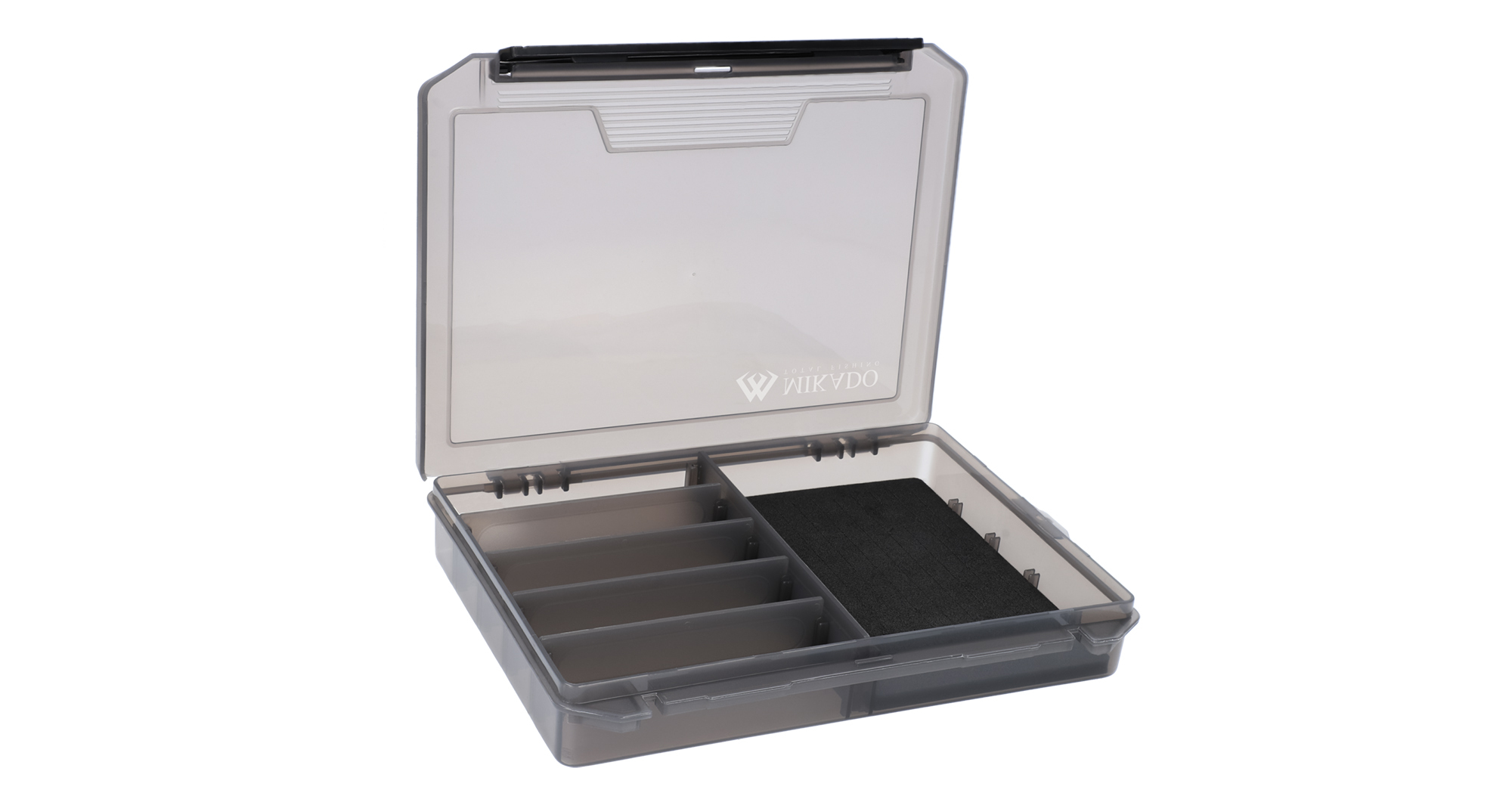 Krabička na príslušenstvo s priehradkou opatrenou špeciálne vyrezanou penou na uloženie rybárskych nástrah a háčikov. Okrem toho má niekoľko klasických, nastaviteľných priehradiek bez peny.
