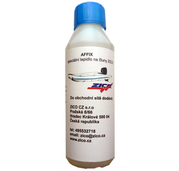 Montážne lepidlo Affixe je špeciálne lepidlo na báze polyuretánového polyméru. Affixe je určený pre lepenie nafukovacích člnov z PVC dodávaných na trh firmou ZICO pod označením BL, GL, CL a Smart.~ Použitie: Lepidlo slúži na prilepenie záplaty na poškodenú časť.~ Poškodené miesto očistíme, odmastíme liehom alebo PVC cleanerom, zdrsníme a nanesieme základnú tenkú vrstvu lepidla. Rovnakú vrstvu lepidla nanesieme na pripravenú záplatu. Obe vrstvy necháme samostatne 1-2 minúty zavädnúť v závislosti na teplote okolia. Potom obe časti pevne spojíme a lepené miesto zaťažíme. Doba pevného spojenia je závislá na okolitej teplote a spoj môže byť namáhaný až po úplnom zaschnutí za 24h.~ Obsah balenia - 250ml.