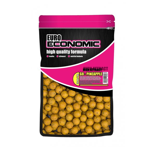 Boilies Sladký Ananás je veľmi atraktívny boilies.Ideálne podkladové kŕmenie pre boilies Ľadová Vanilka.Boilie Sladký Ananás odporúčame pred lovom poriadne zaliať booster Sladký Ananás (Môžete aj niekoľko dní vopred). Sladký ananás obsahuje Enzým bromelín a obsah organických kyselín, ktoré podporujú trávenie. Boilies obsahuje aj stopové množstvo kyseliny maslovej.Ideálne boilies pre studenú vodu.V minulých rokoch sme ku všetkej spokojnosti vyprodukovali niekoľko ton boilies Euro Economic za hranice Českej republiky. Veľký záujem o boilies Euro Economic nás doviedol k spolupráci so svetovo známymi masoví výrobcovia prvotriednych produktov, s ktorým sme zjednotili odbery kvalitných surovín, aby sme maximálne znížili náklady. Vďaka našej kooperáciu a moderné technologické linke dnes firma LK Baits produkuje "kŕmne" -nutričně bohaté boilies za veľmi priaznivú cenu!
