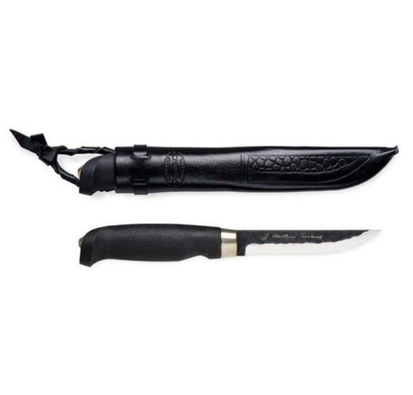 Zoznámte sa s Lynx Black Edition! Tradičný nôž Lynx sme obliekli do moderného elegantného čierneho outfitu. Rukoväť z čiernej brezy má ochrannú olejovú vrstvu. Odolná čepeľ je vyrobená z kovanej uhlíkovej ocele, ktorú je možné ľahko doostriť. Súčasťou je čierne kožené púzdro.