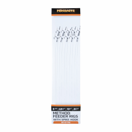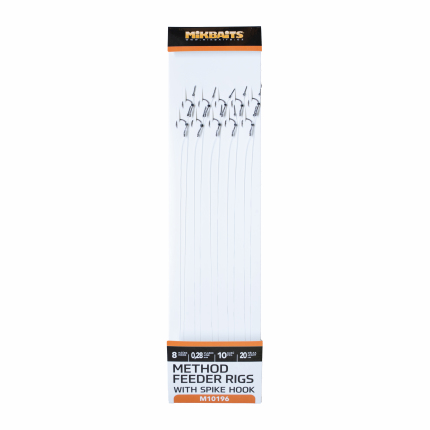 Method feeder nadväzce so zapichovacím hrotom sú určené pre malé Pop-up, Wafters, Mini boilies či plávajúcu aj potápavú kukuricu. Na výrobu sme použili japonské feeder háčiky a fluorokarbón o dĺžke 20 cm.