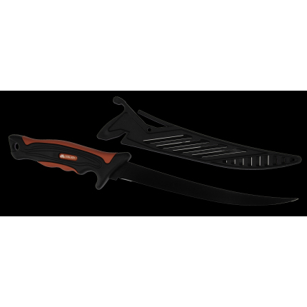 Filetovací nůž s pružnou 23cm čepelí z nerezové oceli. Pohodlná rukojeť zajišťuje bezpečné porcování ryb i masa. Součástí balení je kryt na čepel.