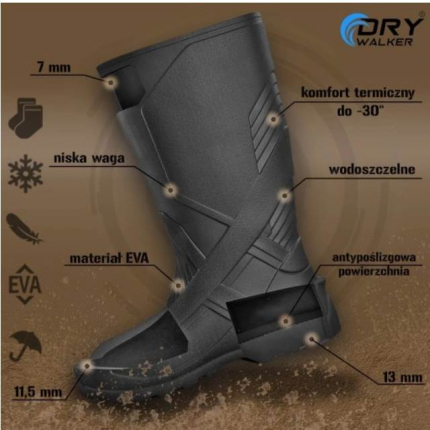 Celý popisCeloročné čižmy s hrejivou vložkou DRY WALKER model Xtrack Short. Vyrobené z materiálu EVA, ktorý je odolný a pritom ľahký a úplne vodeodolný. Vo vnútri sa nachádza vyberateľná hrejivá vložka zakončená mančestrom. Špeciálna absorpčná podložka a protišmyková úprava v podrážke zvyšujú komfort používania. Je doplnený protektorom, ktorý zabezpečuje dobrú priľnavosť na klzkom blatistom povrchu.