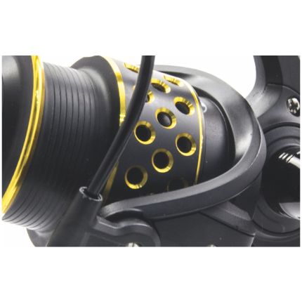 Spoľahlivé zariadenie určené na ťažkú prácu vo všetkých, aj extrémne ťažkých podmienkach. Zosilnená konštrukcia, nízky prevodový pomer, ktorý uľahčuje ťahanie veľkých rýb, rovnako ako skvelé vyváženie, dokonalé lícovanie konštrukčných prvkov a použitie najnovších technologických riešení robia zo zdolávania rekordných exemplárov rýb nesmierne zábavnú činnosť. Súčasťou je špeciálne zosilnená rukoväť a plytká kovová cievka. Veľkosť: 50 Počet ložísk 5+1 Prevod: 5,2:1 Hmotnosť: 403 g Hliníková kľučka Hliníková cievka, náhradná grafitová Počítačom vyvážený rotor Presné kladenie vlasca Návin: 0,30/170 - 0,35/125 - 0,40/ 100 (mm/m)...