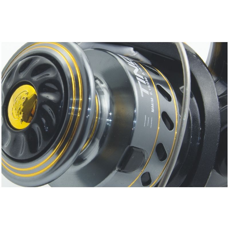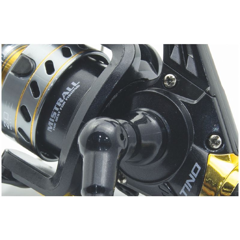Tino je vyrobený z vysoko kvalitných materiálov. Nízka hmotnosť a odolnosť sú hlavné prednosti tohto univerzálneho navijaka. Je postavený na dvoch guličkových ložiskách a je vybavený dokonalým systémom navíjania vlasca, presnou zadnou brzdou s dlhým prevodom a hliníkovou cievkou.