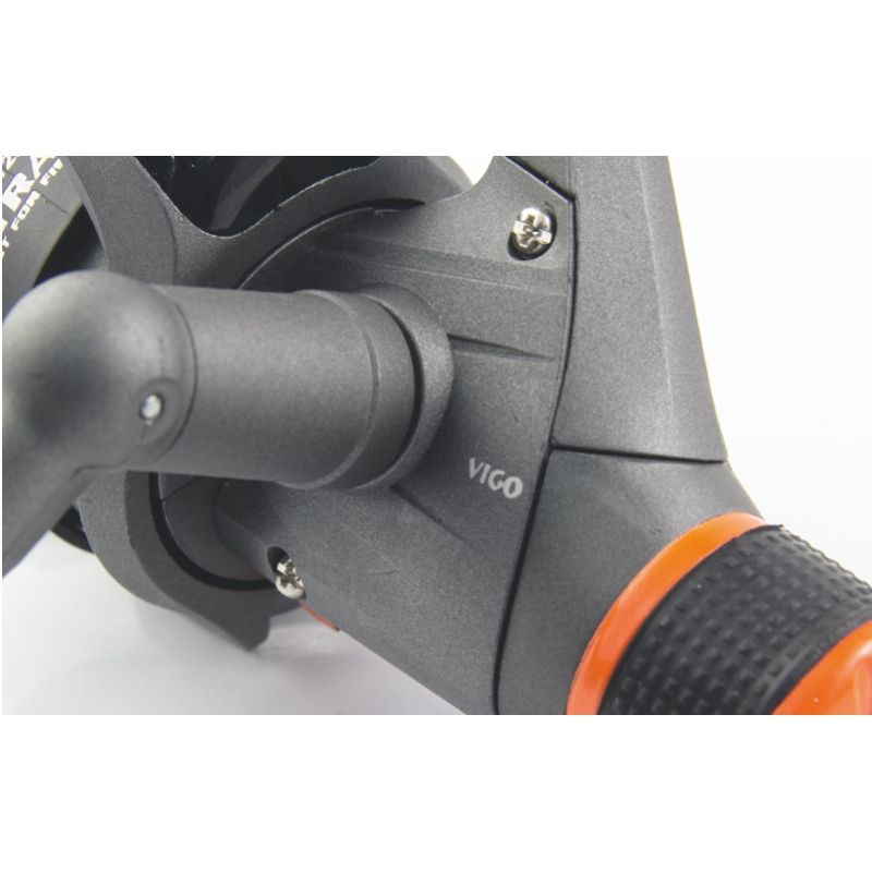Ľahký navijak vybavený dvoma guličkovými ložiskami a jedným jednocestným ložiskom. Obsahuje dve grafitové cievky. Má presnú zadnú brzdu, veľmi dobre vyvážený rotor, pevnú a ergonomickú rukoväť.