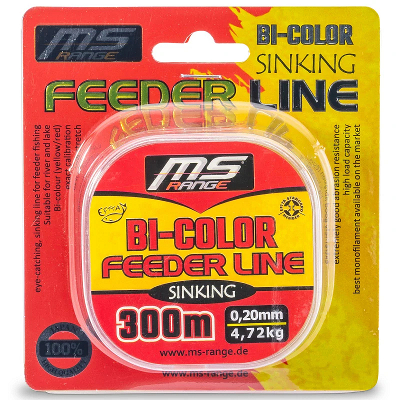 MS Range Bi-Color Feeder Line Sinking je moderní monofilní vlasec určený pro feederový lov, který zaujme svou potápivostí, přesně kalibrovaným průměrem a vysokou nosností. Díky žluto-červenému vícebarevnému provedení je dobře viditelný i za zhoršených světelných podmínek, což ocení každý rybář při lovu na řece i na stojaté vodě. Nízká průtažnost přispívá k lepšímu kontaktu s montáží a vysoká odolnost proti oděru pomáhá při pravidelném nasazení v náročnějších podmínkách. Vlasec je vyroben v Japonsku.