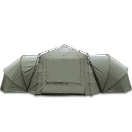 Inovatívny nový Nash Base Camp posúva hranicu pohodlia na ďalšiu úroveň vďaka praktickému priestoru v štýle Gazebo v kombinácii s pripínacími spálňami v jednom dizajne. Rámy bivakov sú navrhnuté tak, aby sa ľahko pripínali do bočných stien centrálnej jednotky Nash Base Camp a vytvárali tak úplne vodotesné spojenie až s dvoma samostatnými spálňami. Vďaka umiestneniu bivaku do jedného panelu so zipsom sa jedná o perfektnú kombináciu Vášho vlastného priestoru na spanie a spoločného centrálneho priestoru, ktorý využijete na varenie, stravovanie, schádzanie sa, alebo tiež na každodenné činnosti spojené s nadväzovaním, nastražovaním nástrah a iných činností. Obe spálne obsahujú vnútornú moskytiéru a integrovanú podlahu, takže vzniknú dve jednotky, ktoré udržia hmyz, hlodavce a iné živočíchy mimo Váš priestor na spanie a tiež eliminujú kondenzáciu vlhkosti vo vnútri. Zadné zipsové panely s moskytiérou umožňujú pri teplých dňoch regulovať prúdenie vzduchu nielen spálňami, ale aj centrálnym priestorom. Ideálna nielen pre páry, ale aj pre priateľov na dovolenke či výlete. Tiež je dobrým pomocníkom pri rybárčení na rybárskych závodoch. Bivak Nash Base Camp robí presne to, čo hovorí – dáva Vám perfektný spoločný priestor pre Vaše kaprárske dobrodružstvá, nech už ho vezmete kamkoľvek.