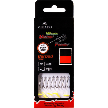 Mikado nadväzec mf s push stop háčik s protihrotom číslo 6 / vlasec 0.28mm/10cm 8 ks
