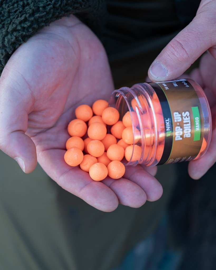 Plovoucí boilies v oranžové barvě s příchutí manga.