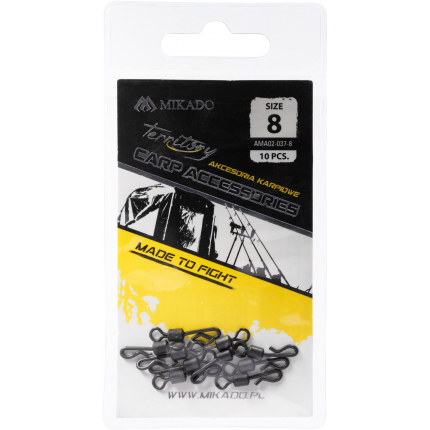 Rýchloupínacie obratlíky "Quick Swap". Obratlíky slúžia na rýchlu výmenu hotových nadväzcov. Vyrobené z kvalitného materiálu s matne čiernou povrchovou úpravou.Nosnosť: 15kg