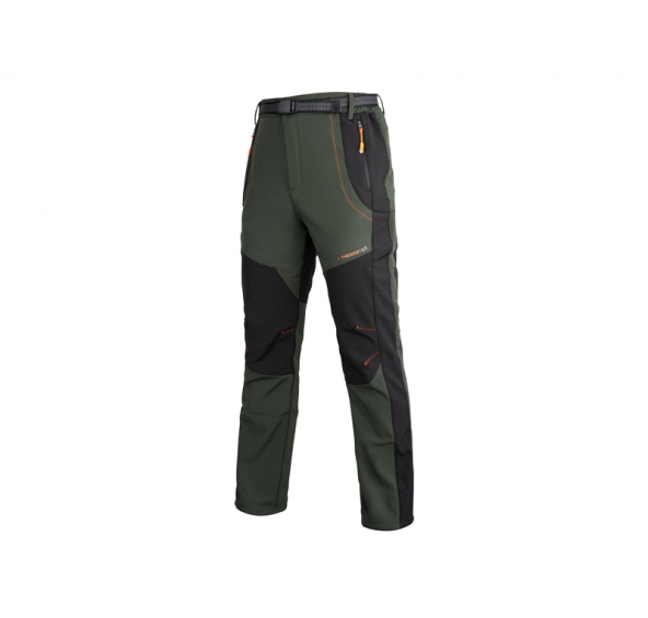Kvalitné softshellové nohavice vhodné na rybolov a iné outdoorové aktivity, ktoré vás ochránia pred nepriaznivým počasím. Pri ich výrobe sme použili funkčnú tkaninu s vodným stĺpcom 5000mm, ktorá je zároveň paropriepustná, čo znamená, že zostanete v suchu aj v náročných vonkajších podmienkach. Tkanina je tiež čiastočne elastická, čím sa ľahko prispôsobí rôznym postavám. Nohavice disponujú dvoma uzatvárateľnými vreckami na zips po bokoch a jedným vzadu. Zapínanie funguje pomocou kvalitného kovového klipu a pevného zipsu. Vnútorná strana je podšitá hrejivou fleecovou vrstvou, čo zaručí tepelný komfort aj počas chladnejších mesiacov. Nohavice sú dodávané s jednoduchým a praktickým opaskom, pomocou ktorého je možné vrchnú časť nohavíc ideálne obopnúť okolo pása. Farebne sú nohavice ThermoTEX ladené do tmavozelenej a čiernej farby so žiarivými oranžovými prvkami, čím sa stanú nielen užitočnou a vysoko funkčnou, ale aj peknou súčasťou vášho outfitu.