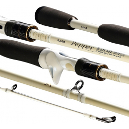 Ojedinělý perleťový design charakteristický pro řadu Pepper. Prut je vyroben ve variantě pro baitcastingový naviják. Jeho japonský blank s Extra Fast akcí je kompletně osazený ultra lehkými FUJI TORZITE titanovými “K” očky a FUJI sedlem navijáku pro jeho dlouhou životnost. Očka prodlužují hody a méně opotřebovávají vlasec nebo šňůru. Ergonomická odlehčená rukojeť EVA. Prut je vhodný především pro lov candátů a okounů na s gumovými nástrahami. Dodáván s transportním tubusem. Délka 215 cm, vrhací zátěž 3,5-21 g, počet dílů 1+1, počet oček 10, váha 123 g, skladná délka 184 cm.