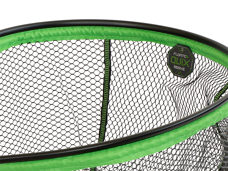 Sieťka FloateR QUIX je celá pogumovaná, tým pádom nenasáva okolité vodu, ľahko a rýchlo na vzduchu vysychá. Pod rámom je navyše prešitá výraznou zelenou látkou po celom obvode pre zvýšenie pevnosti a odolnosti. Keďže hlava pláva na hladine, môžete si ju pohodlne položiť na vodu, kým sa vám podarí rybu vyčerpať a naviesť k podberáku. Dizajnovo je ladená do čierno-zelenej farby a tým skvele dopĺňa feederovú radu produktov REAXE. Hlava sa ideálne hodí na kombináciu s rukoväťami REAXE, ale vďaka univerzálnemu závitu je vhodná pre väčšinu predávaných rukovätí na trhu.