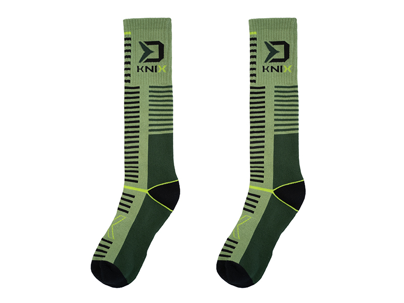 Termo podkolienky poskytujúce tepelný komfort počas chladných jesenných a zimných dní strávených pri vode alebo na potulkách prírodou. Sú vyrobené z hrejivej a pružnej tkaniny, ktorá sa skvele prispôsobí tvaru chodidla a netlačí na lýtkach. V hornej časti sa nachádza praktická gumička zabezpečujúca fixáciu podkolienok v požadovanej pozícii. Farebná kombinácia zelených odtieňov v kombinácii s čiernymi a fluo žltými prvkami vytvára efektný dizajn, vyladený veľkým logom Delphin a nápisom KNIX. Dodávame ich v troch rozmeroch so širokým rozpätím veľkostí, vďaka čomu si každý vyberie pre seba tú ideálnu. Technické parametre: Materiálové zloženie: 85% bavlna, 10% elastan, 5% polyester