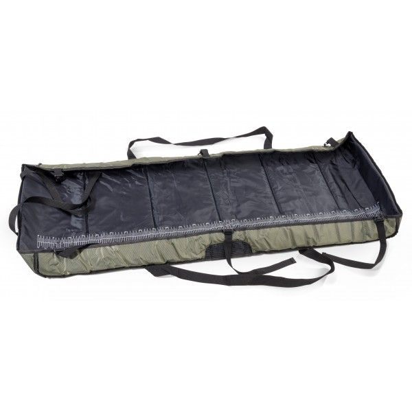 Praktická podložka na dravca. Vpodložce je natlačené meracie pásmo, môžeme tak rybu pohodlne a rýchlo zmerať. Vďaka trom sponkám možno rybu vpodložce zabezpečiť a môžeme ju tak bezpečne a pohodlne zvážiť. Výhodou sú malé prepravné rozmery.