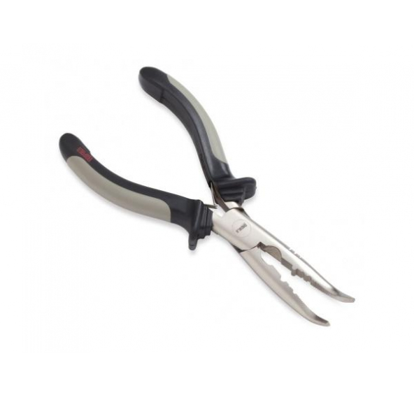 RCPC6 Curved Fisherman Pliers - najobľúbenejší 16,5 cm dlhé zahnuté kliešte z poniklovanej uhlíkovej ocele as dvojitou pružinou pre ľahšie vyslobodenie háčikov, vybavené sú patentovaným nástrojom Rapala pre nastavenie chodu woblerov