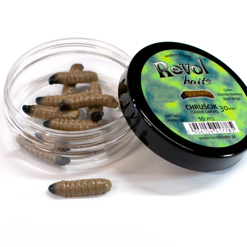 Revol Baits nástraha Caddis Larva 30mm příchuť krevetka, barva tmavě béžová 10ks
