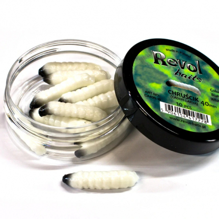 Revol Baits nástraha Caddis Larva 40mm příchuť sýr-česnek, barva bílá 10ks