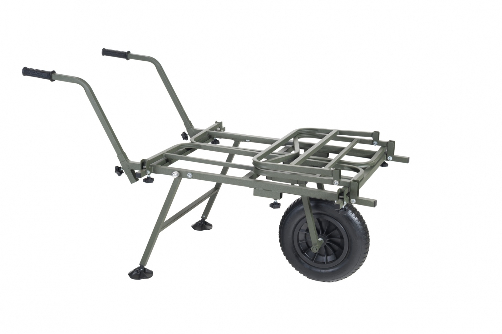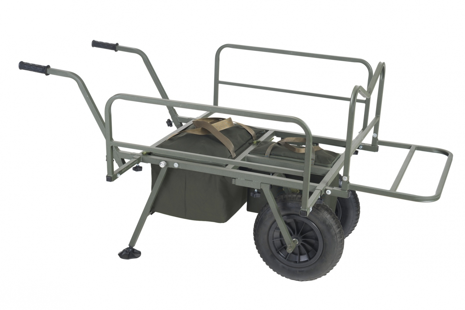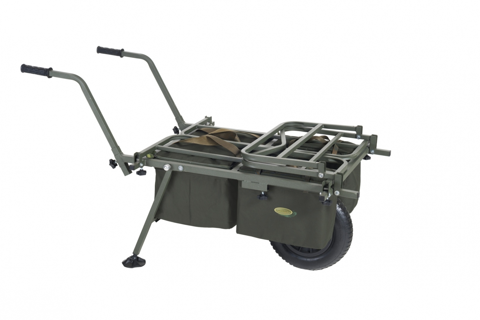 Nekompromisný a dokonale variabilný systém pre prepravu kompletnej výbavy na lovné miesto. Rám vozíka umožňuje jednoduchú prepravu aj najväčších XXL transportných tašiek v prednej časti a bočné výsuvné diely vyvoří dostatočne veľký priestor pre bivak, lehátko, kreslo a ďalšie doplnky....