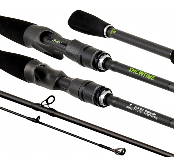 Showtime Kick Off C 215MH/H: délka 215 cm, počet dílů 1+1, vrhací zátěž 5–21 g (max. 25 g), skladná délka 180 cm, váha 131 g, počet oček 10.