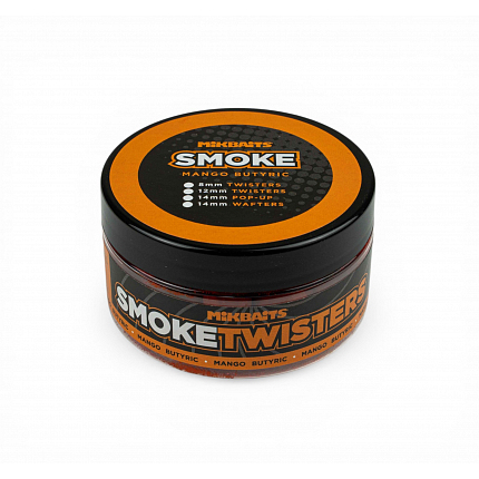 SMOKE twisters ve speciálních tvarech jsou nesmírně atraktivní neutrálně vyvážené fluo nástrahy. Kouřový SMOKE efekt, který se po vhození do vody line z nástrahy jim dodává dvojitou atraktivitu. Jsou skvělé jak při klasickém lovu kaprů, tak i na feeder, method feeder, krátkodobý lov, závodní chytání, při slabé aktivitě ryb nebo na velmi opatrné ryby. Jejich výhodou je, že zlehka leží u dna a působí tak přirozeněji než např. pop-up. Jsou však natolik lehké, že kaprovi vletí do tlamy mnohem hlouběji, než očekává. Dají se požít celoročně, včetně velmi chladné vody.