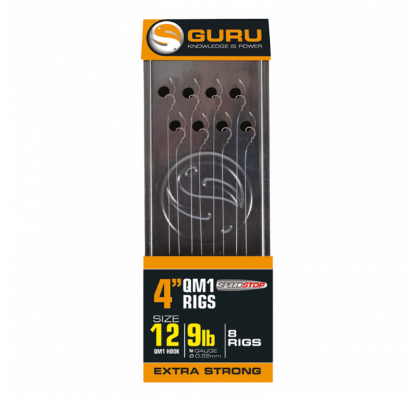 Pre tento náväzec zvolila firma Guru háčiky QM1. Vďaka týmto pripraveným náväzcom bude výmena porušených montáží veľmi rýchla. Náväzec QM1 Speed Stop Rigs je optimálny pre nástrahy: mäkké a vŕtané pelety, masové nástrahy, kukurica, boilies, červy, chlieb.