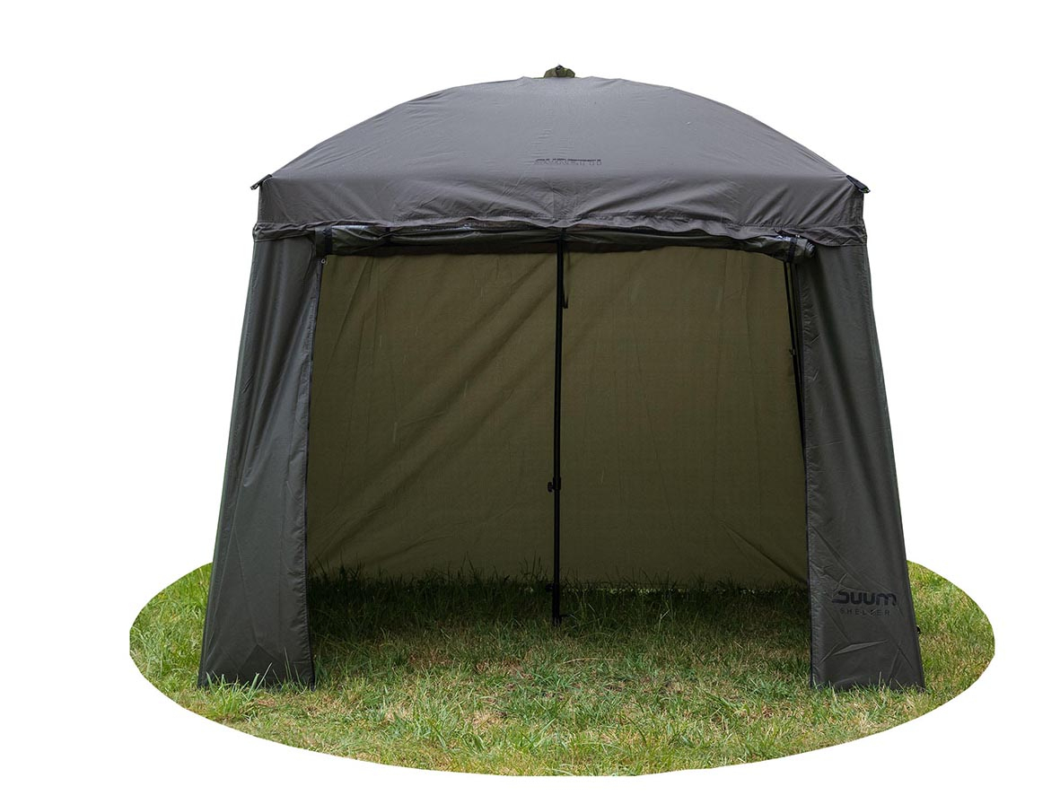 Rybársky dáždnik DUUM 250 Full Cover má revolučnú a jedinečnú konštrukciu. Krytý pôdorys 2,5x2,5m je vďaka použitiu štyroch zosilnených sklolaminátových ramien prísne štvorcový, čo umožňuje stopercentné využitie vnútorného priestoru. S odľahčeným rámom sa lepšie manipuluje a uľahčuje stavbu celého dáždnika. Kryt zipsu je umiestnený pod ramená. Pri daždi tak voda plynule steká, nehromadí sa pri šve a tým sa minimalizuje možnosť presiaknutia vody dovnútra. Na koncoch ramien sú už od výroby integrované kĺby so závitom na teleskopické tyče. Pri dokúpení štyroch tyčí (kód 5104100ES) je možné dáždnik na ne postaviť a odskrutkovať stredovú tyč. Vznikne tak vo vnútri priestor pre voľný pohyb.... Celý popis